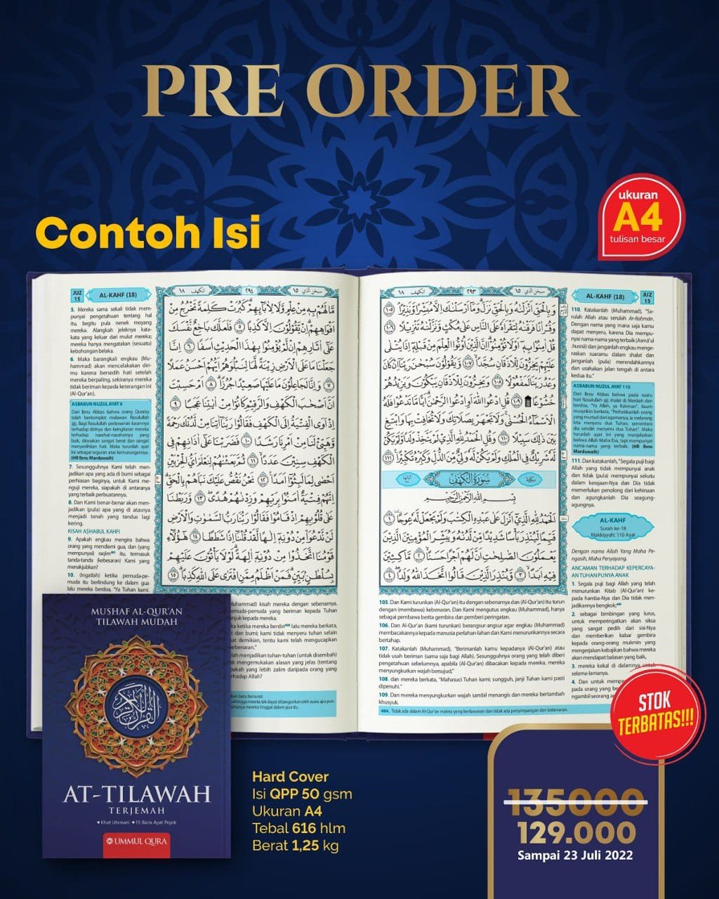 Ukuran besar & menggunakan kertas kualitas premium sehingga nyaman di baca untuk semua kalangan, di rekomendasikan untuk bapak-bapak / ibu-ibu majelis taklim. 🥰