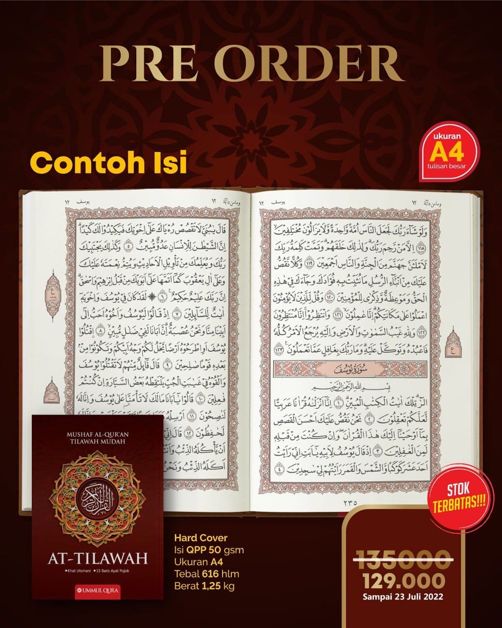 Alhamdulillah telah hadir Al Qur’an At Tilawah ukuran A4 sangat di rekomendasikan untuk dewasa & orang tua yang ingin membaca Al Quran dengan ukuran ayat besar & nyaman ✨