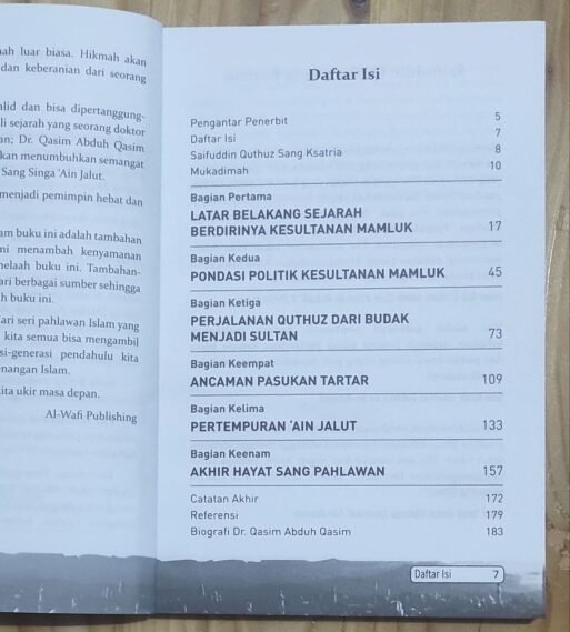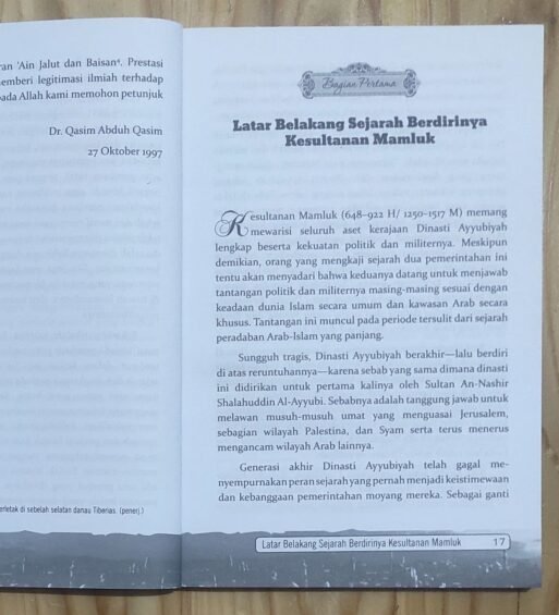 Di buku ini kita akan melihat jelas, betapa peran Saifuddin Quthuz dalam mewujudkan cita-cita kaum muslimin benar-benar nyata. Beliau singa di pertempuran ‘Ain Jalut. Peperangan yang berhasil melumat habis kedigdayaan pasukan Mongol yang bengis.